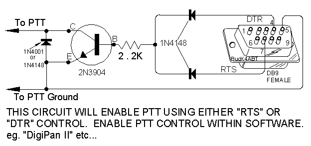 -Podłączenie PTT. Komputer-Trx (RTS i DTR).