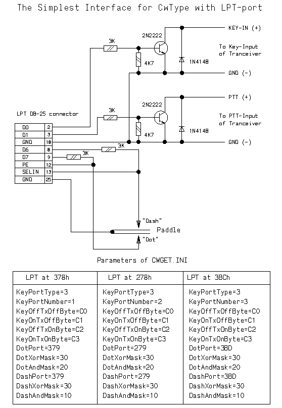 -Interface do CWTYPE w/g UA9OSV na port LPT.