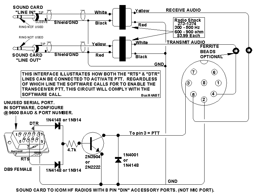 -Podłączenie PTT. Komputer-Trx (RTS i DTR).